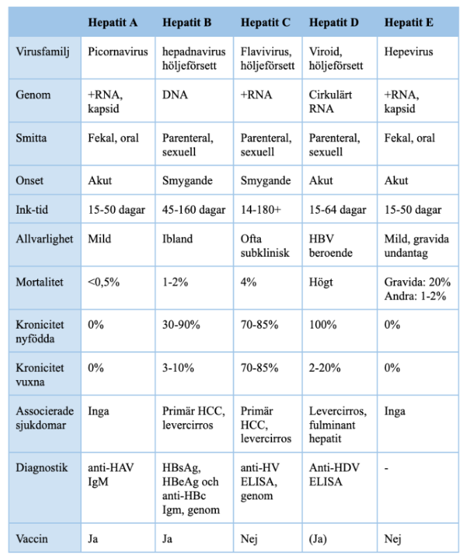 Onset för de olika hepatitnera?