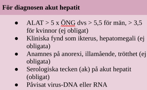 Diagnoskriterier för akut hepatit?