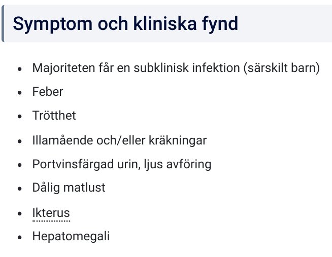 Hepatit A? Typisk spridning och symtom?