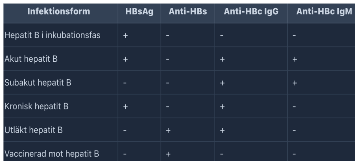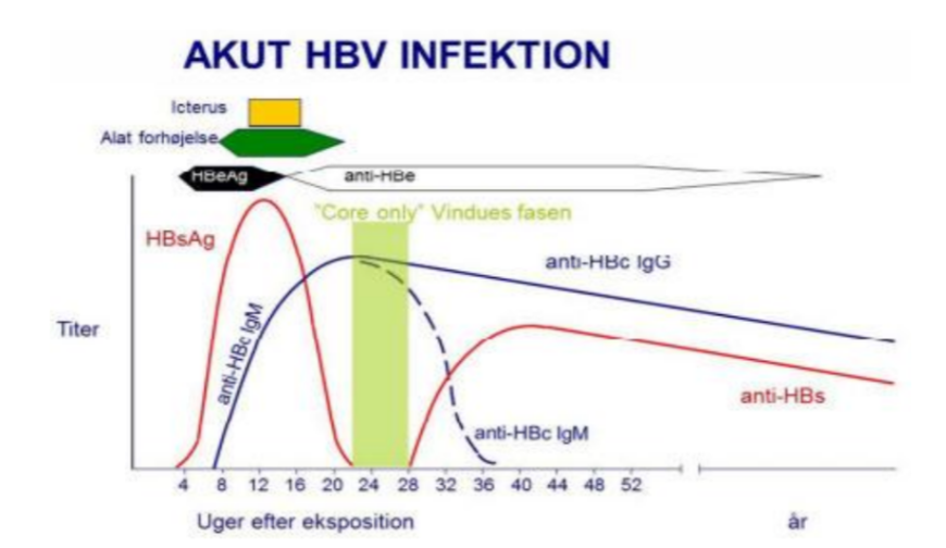 Mellan ca v 20-28 är endast anti-HBc positiv (antingen IgM eller både IgM och IgG)