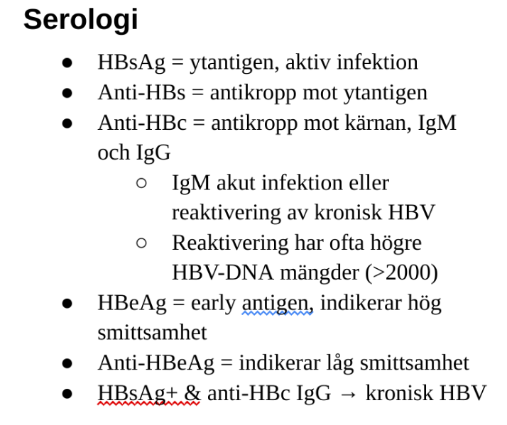 Vad står följande serologiska prover för HBV för?