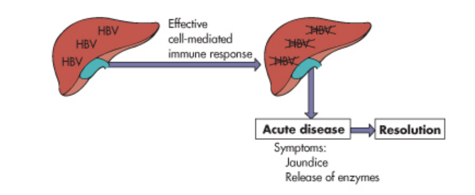 Cell-mediated immune response- Cytotoxic T lymphocytes kill infected hepatocytes