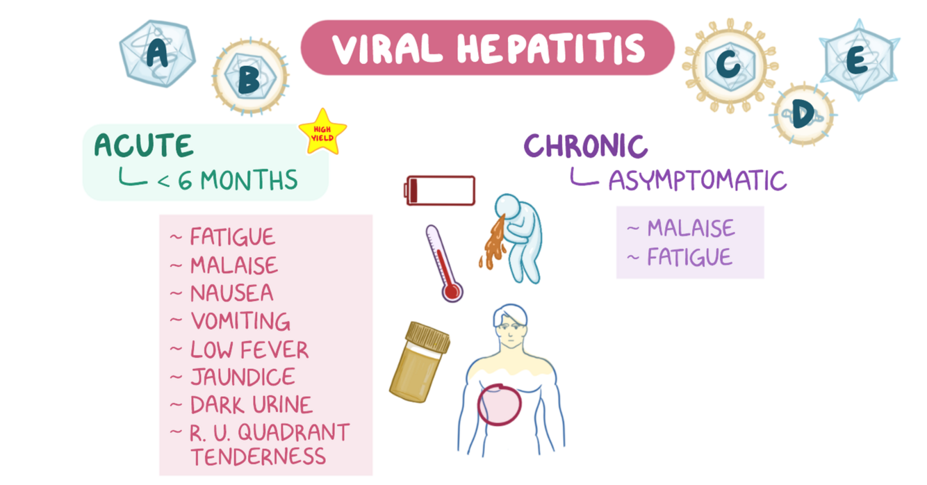 Sometimes causes typical S/S of hepatitis: anorexia, malaise, and jaundice, but may be asymptomatic