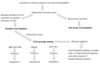 Diagnosis is by serologic testing: antigens and antibodies (surface, core, envelop)