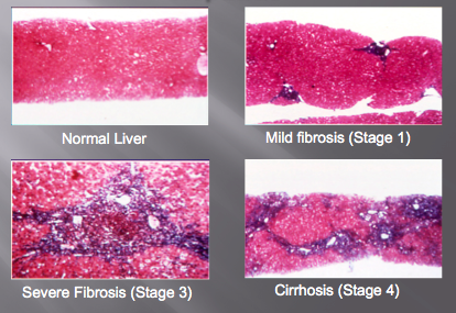 Two components: inflammation grade, which is the redness that forms around a cut in the skin, and fibrosis stage, which is scar tissue