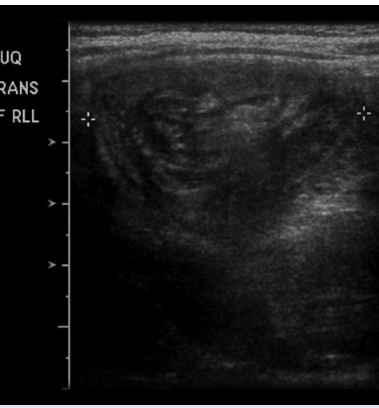 Ultrasonography of the abdomen in patients with intussusception classically shows a “bullseye” or “target” sign, which represents the infolding of the small intestine.