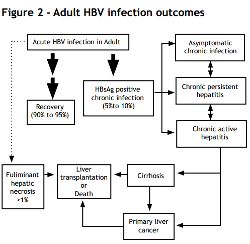 Asymptomatic, or: * **Variations in AST/ALT - over short time period** * **Cirrhosis** * **Hepatoma**
