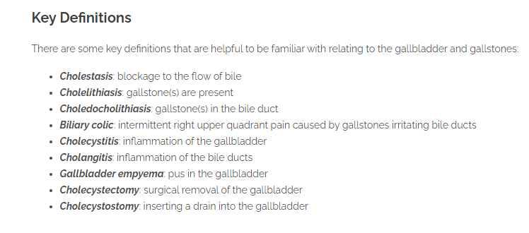State some potential complications of gallstones