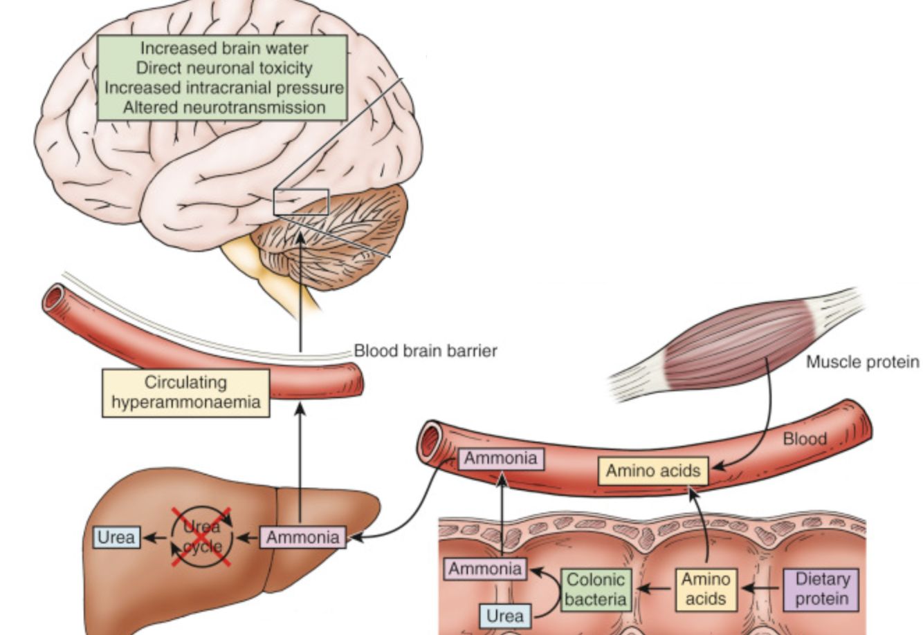 How can liver dz lead to hepatic encephalopathy?