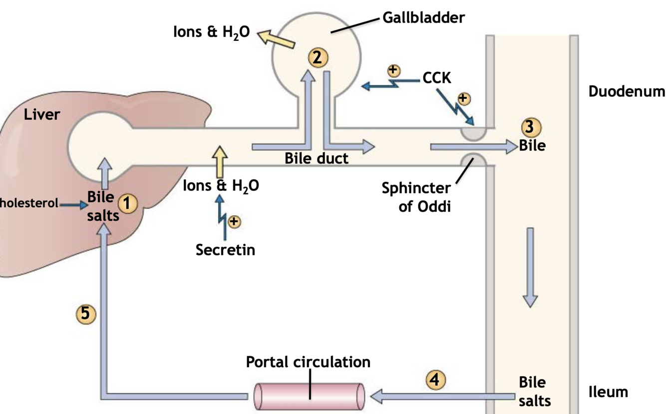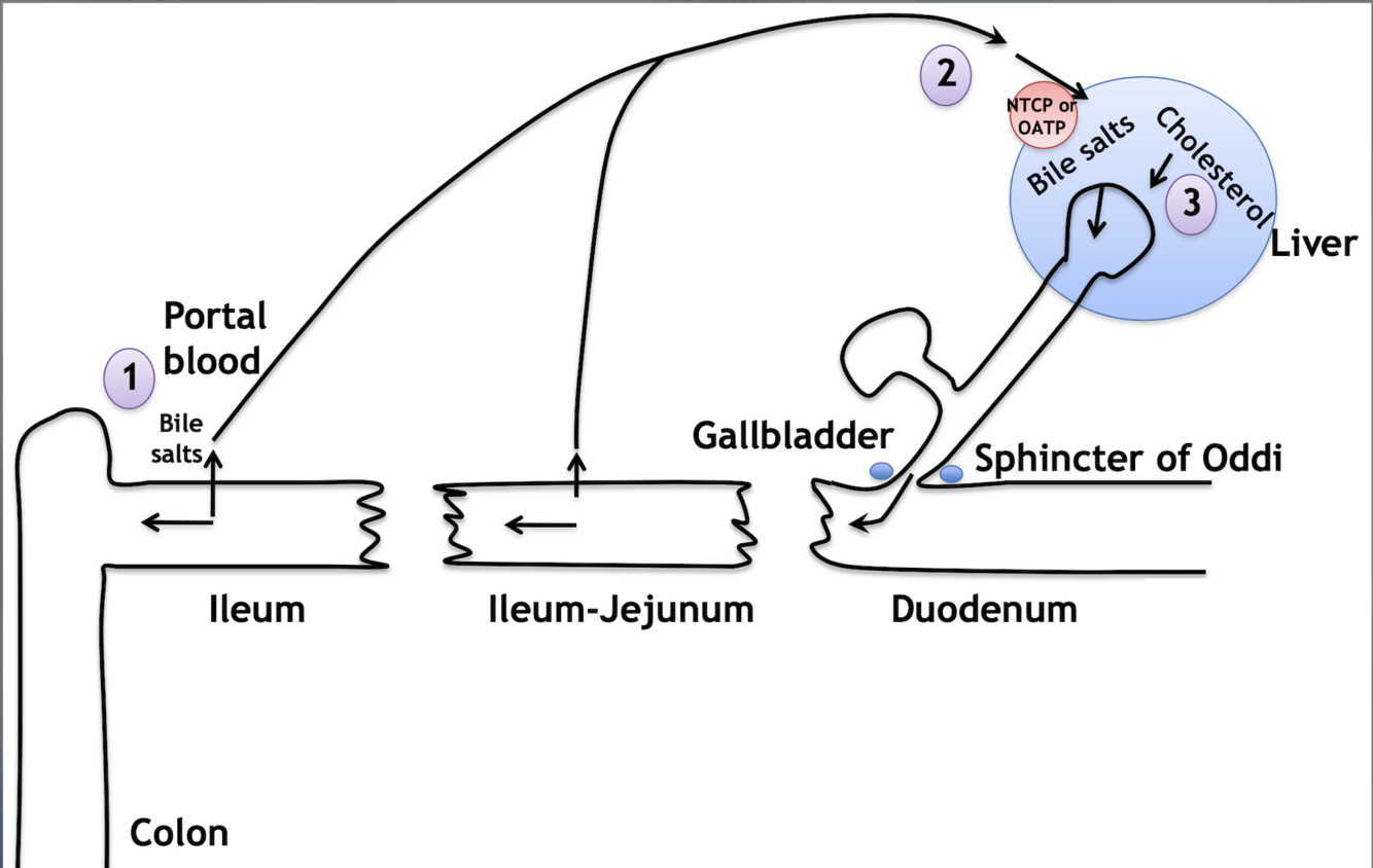 1) bile salts are transported from ileum to portal blood