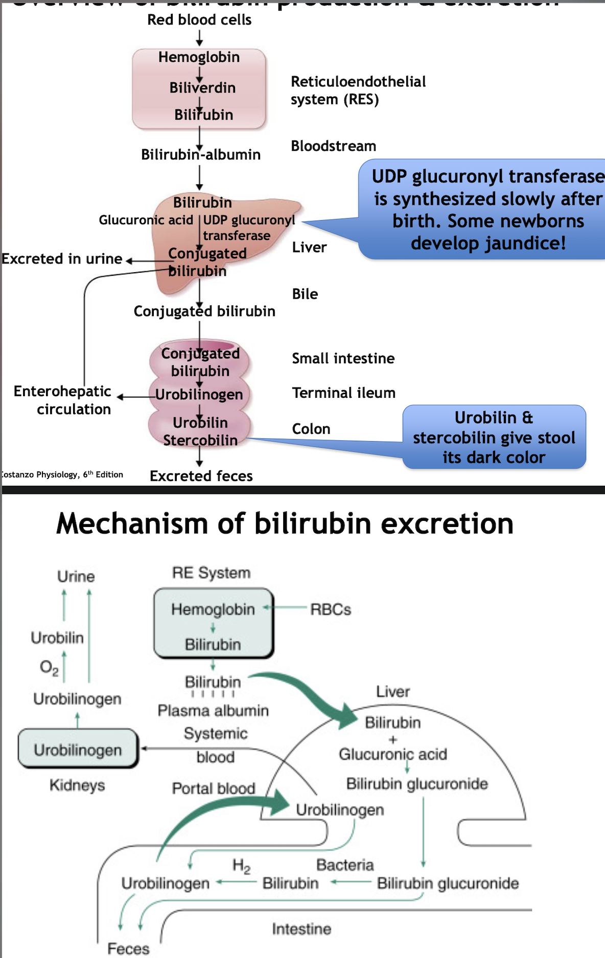 What is the mechanism of bilirubin production/secretion?