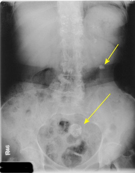 Uterine fibroids can sometimes calcify on the outside and look similar to stones.