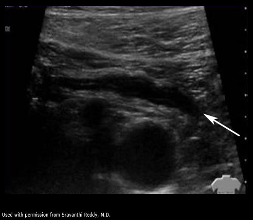 Remember that US is the study of choice for diagnosis in pregnant patients and children.