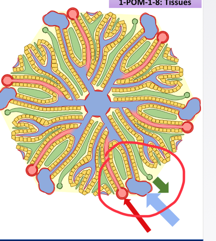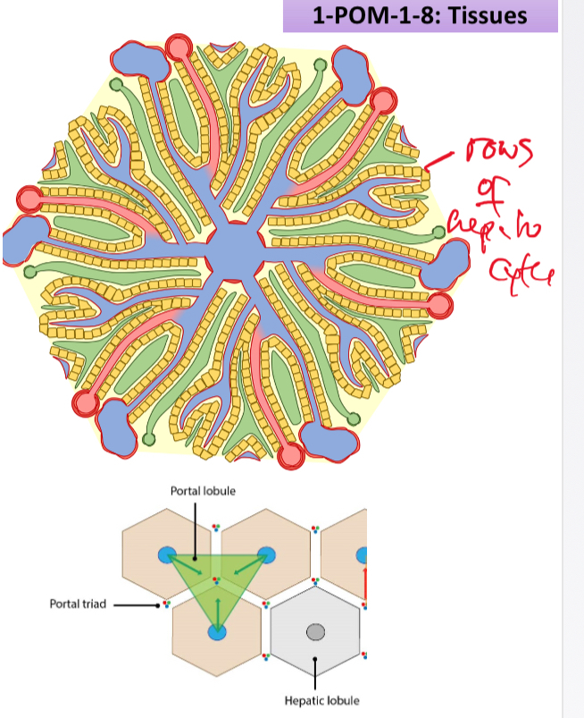 Hence hepatocytes near outer hepatic lobule (come to point A) receive early exposure to blood contents like: