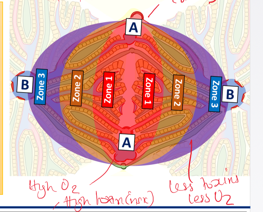 Hence during a trauma when there’s acute blood loss, zone 3 suffers the most