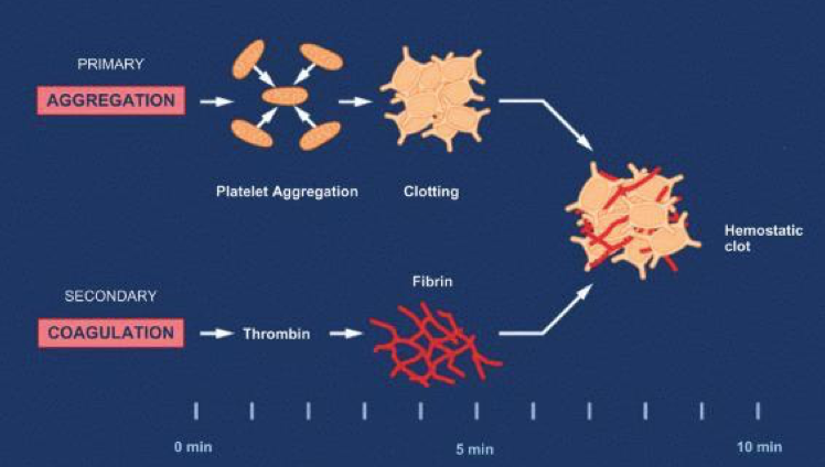 polymerised fibrin, together with platelets, forms a haemostatic plug / clot over a wound site