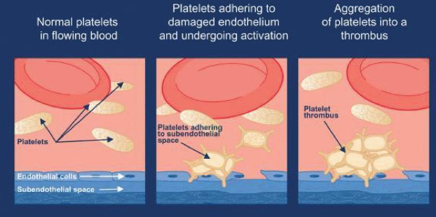 platelets adhere to the subendothelial space when an endothelium is damaged and undergo activation