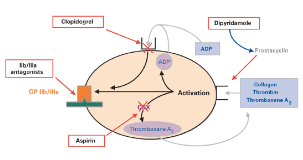 this prevents the ADP-mediated activation of the glycoprotein IIb/IIIa complex
