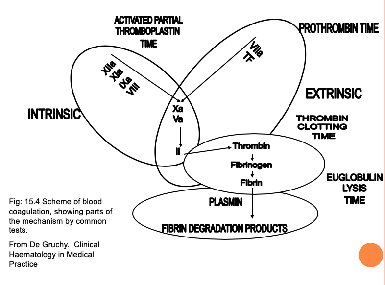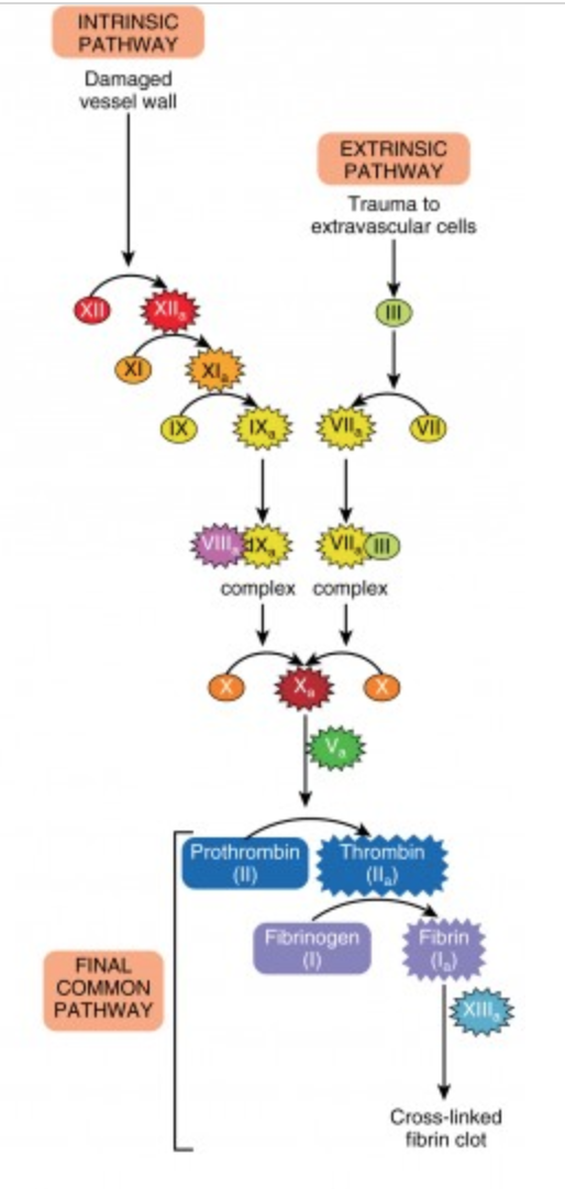 Which factors are involved in the intrinsic and extrinsic pathways?