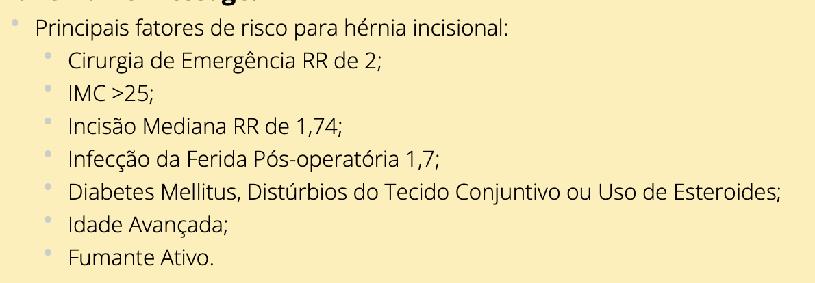PRINCIPAIS FATORES DE RISCO P/ HERNIAS INCISIONAIS?