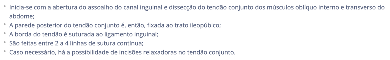 “SUTURA DO ARCO APONEURÓTICO DO TRANSVERSO AO LIGAMENTO PECTÍNEO (COOPER), COM INCISÕES RELAXADORAS NA BAINHA DO RETO ABDOMINAL.”