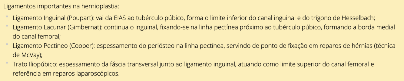 LIGAMENTOS IMPORTANTES NA HERNIOPLASTIA INGUINAL?