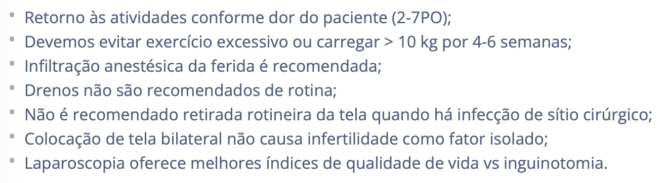 RECOMENDAÇÕES PADRÃO DE PÓS OP DE HERNIAS INGUINAIS PELA SOC BRASILEIRA DE HÉRNIA: