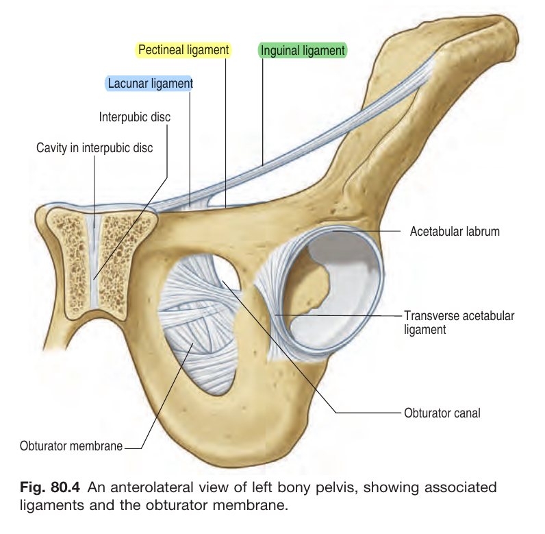 O ligamento lacunar é a conexão entre os ligamentos inguinal e pectíneo.