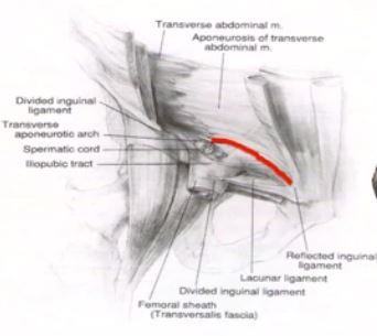 O tendão conjunto delimita uma área, quanto maior, pior. Área mais exposta a herniar.