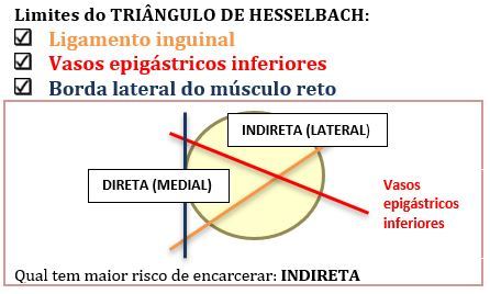 A hérnia inguinal indireta tem maior risco de encarceramento que a direta.