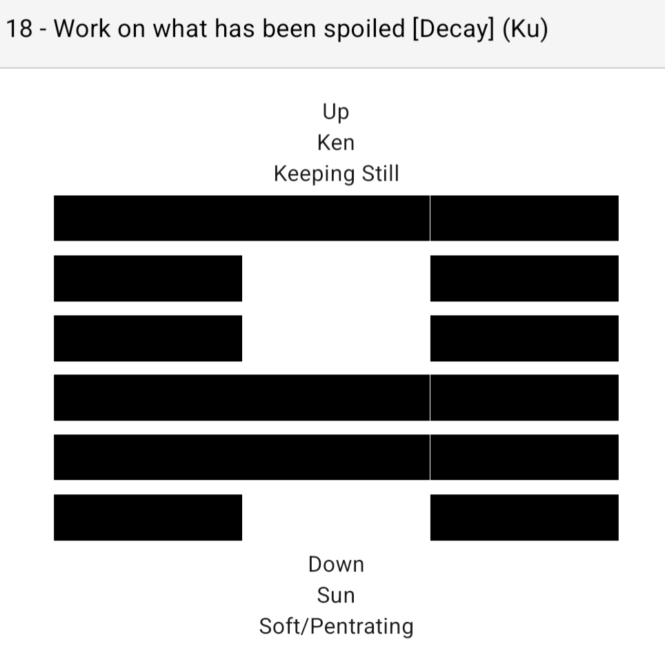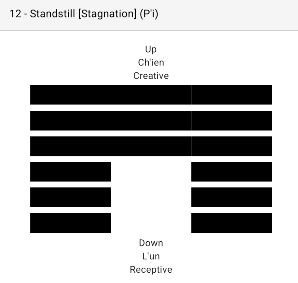 An impasse, stagnation, and decay. Heaven and Earth push away from each other.