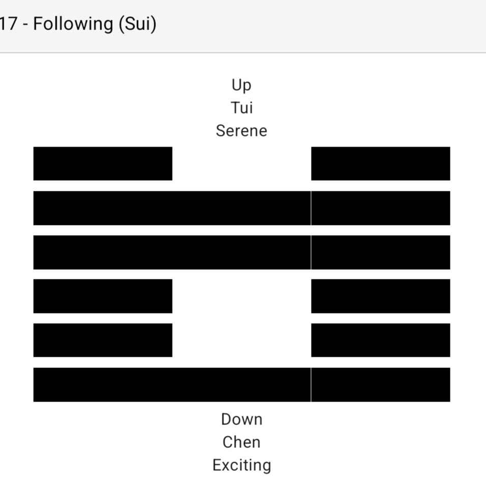 Following brings success. Perseverance furthers. Do not blame.