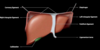 A: La fosa de la vesícula biliar, la porta hepatis y el área desnuda.