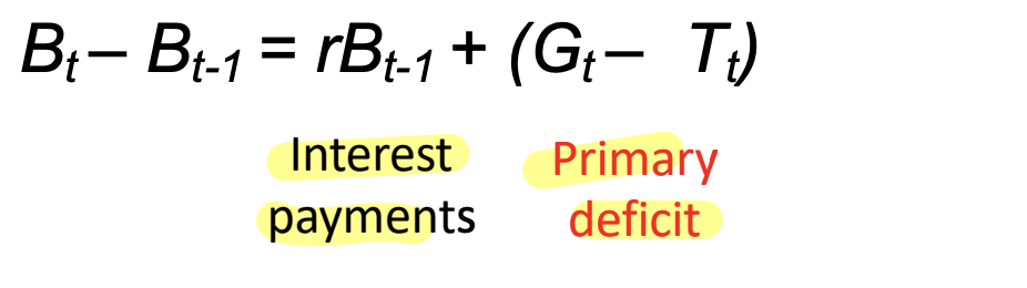 Primary deficit - gov spending (G) - taxes (T)