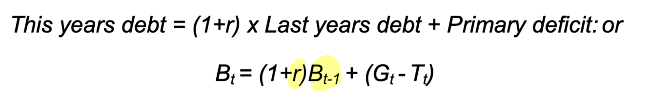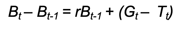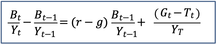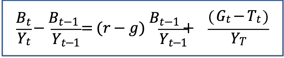 -This tells us that the difference between real interest rate and the rate of growth of GDP, multiplied by the debt ratio at the end of the previous period