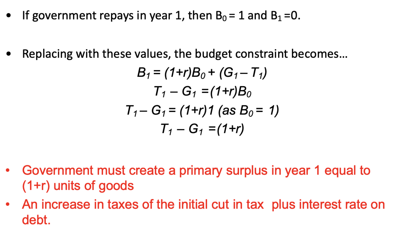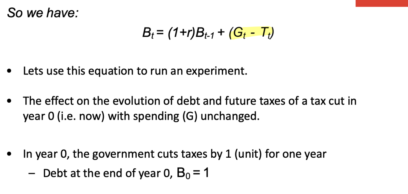 -If G is unchanged, reduction of taxes today must be offset by an increase in future taxes