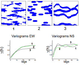 Very different patterns, yet may share the same variogram (“yet same statistics up to order 2”)