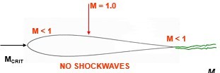 What happens when the critical mach number < freestream mach number < 1?
