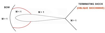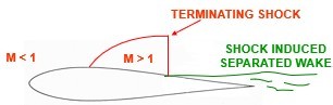 terminating shock is at the trailing edge no longer slowing the flow to subsonic
