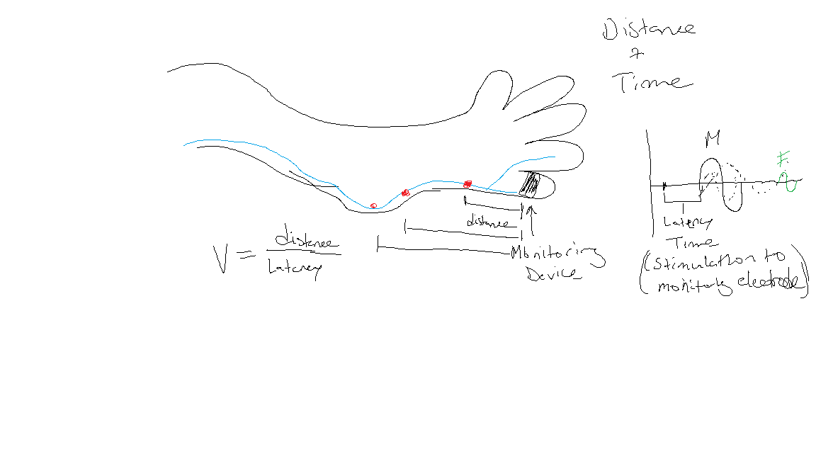 M-Wave (orthodromic conduction, motor down) - How fast you can conduct a nerve (From stimulus up the nerve down to monitoring device)