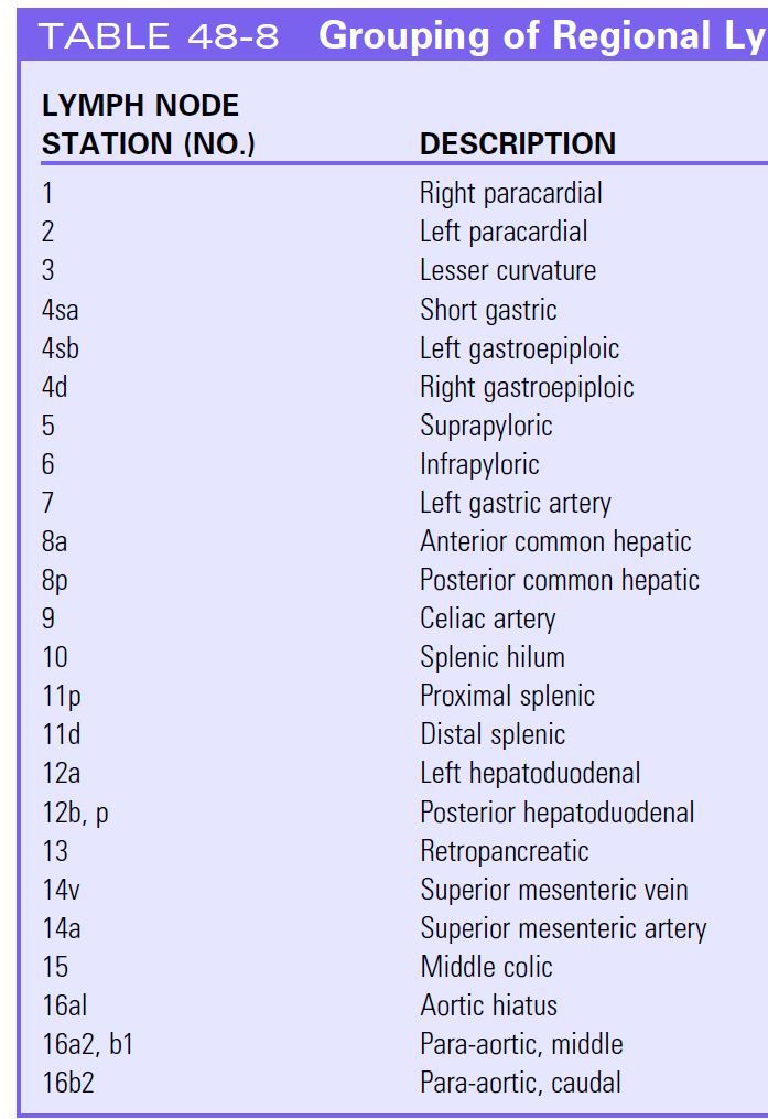 D2 gastrectomy involves R0 resection, all D1 nodes (stations 1-6) plus left gastric, common hepatic, coeliac, splenic and splenic hilar nodes (station 7-11)