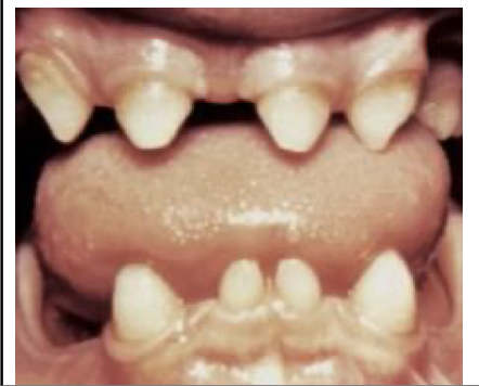 * Bulbous crowns in radiographs (Bc constricted DEJ)