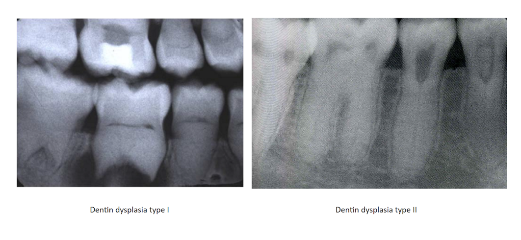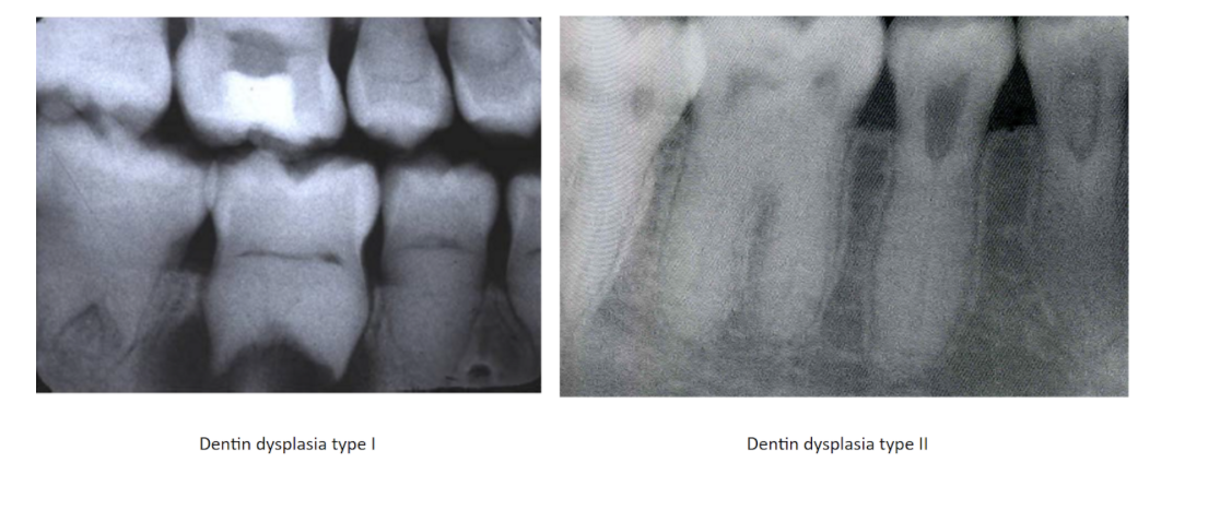 * Type 2: Thistle shaped Pulp w/normal roots; Primary teeth=blue or amber color