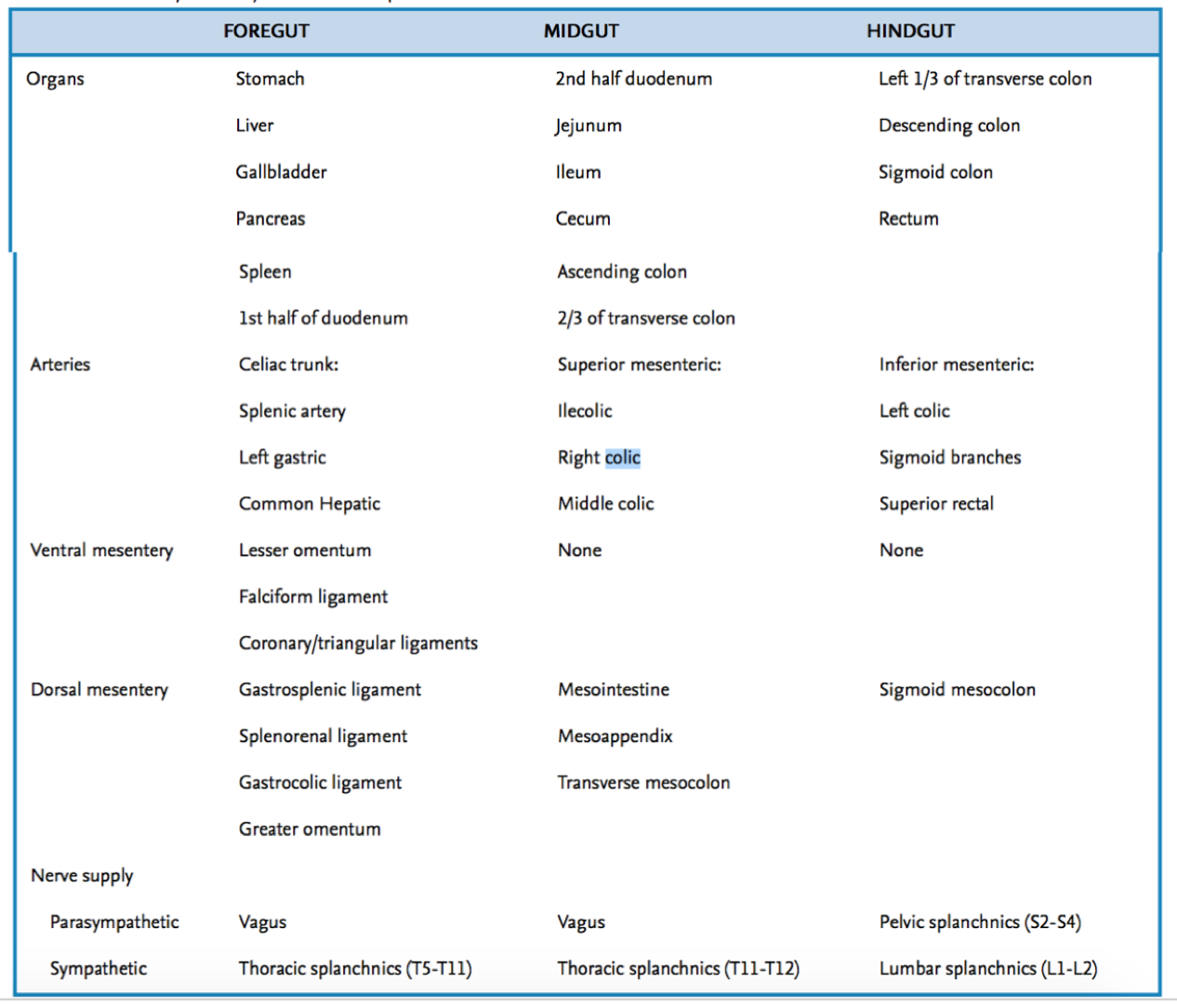 Vagus nerve - foregut and midgut Pelvic splanchnic - hindgut