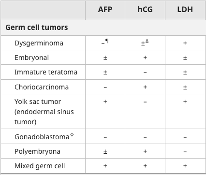 Dysgerminoma and choriocarcinoma both not elevated