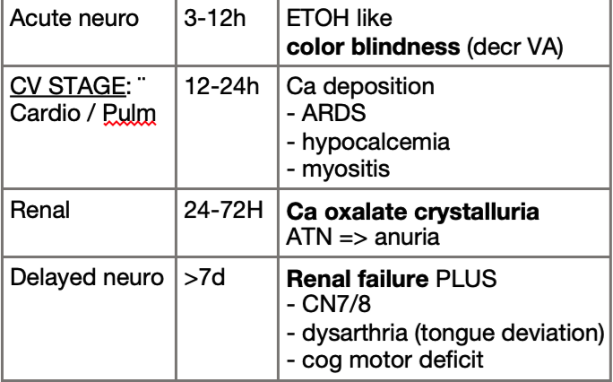 Indications for fomepizole / HD in toxic ETOH ingestion
