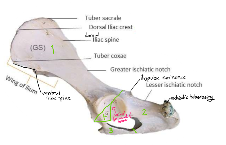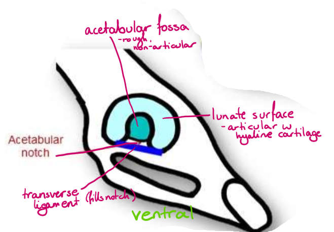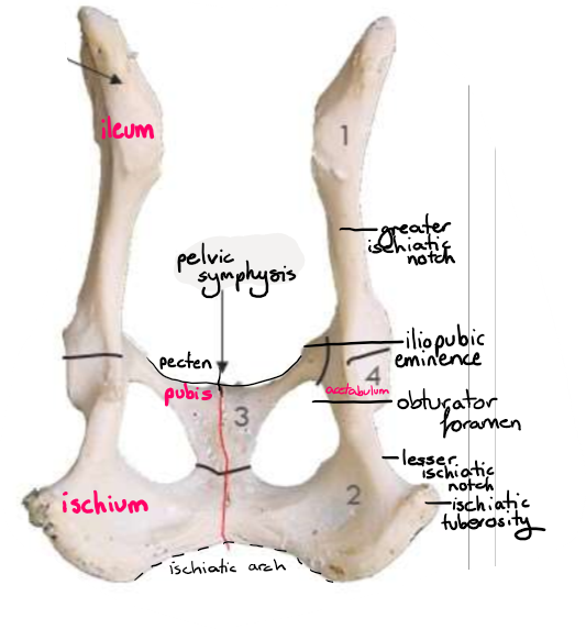 @ boundary ilium, pubis + ischium -> articulate w head of femur ==> hip joint