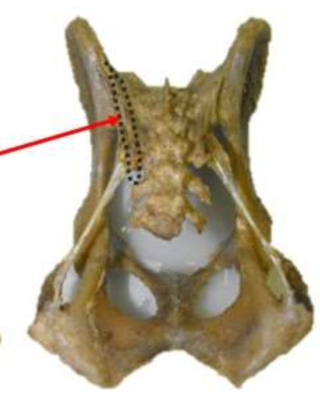 v strong band collagenous tiss sacrum (S3 + Cd1) -> ischiatic tuberosity
