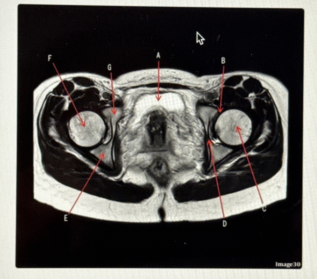 Letter G points to the