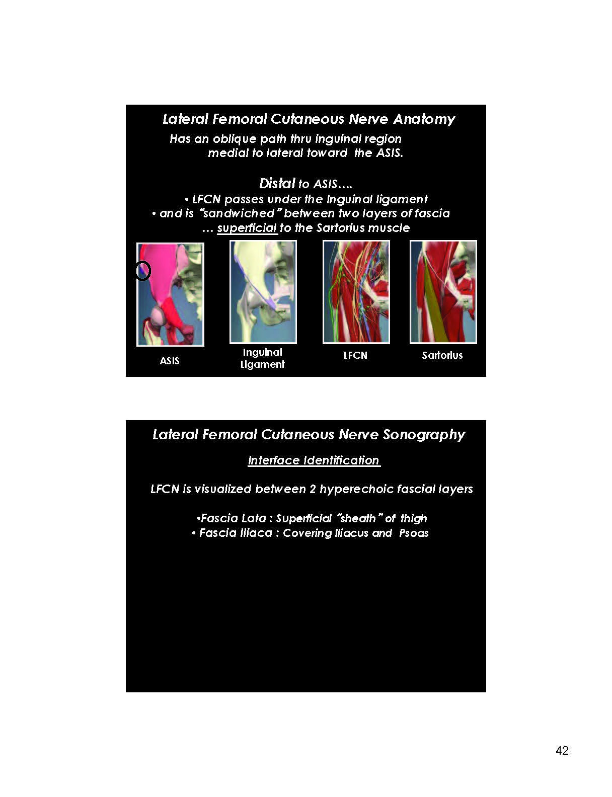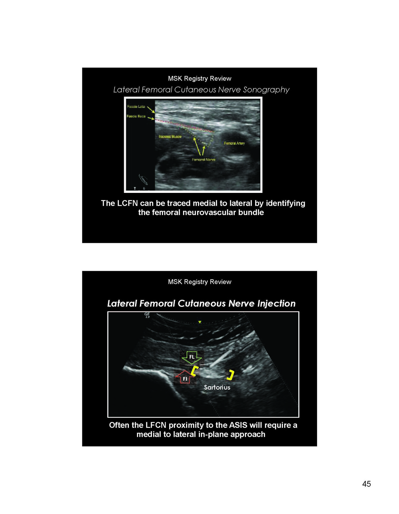 The LCFM is visualized between 2 hyperechoic fascial layers